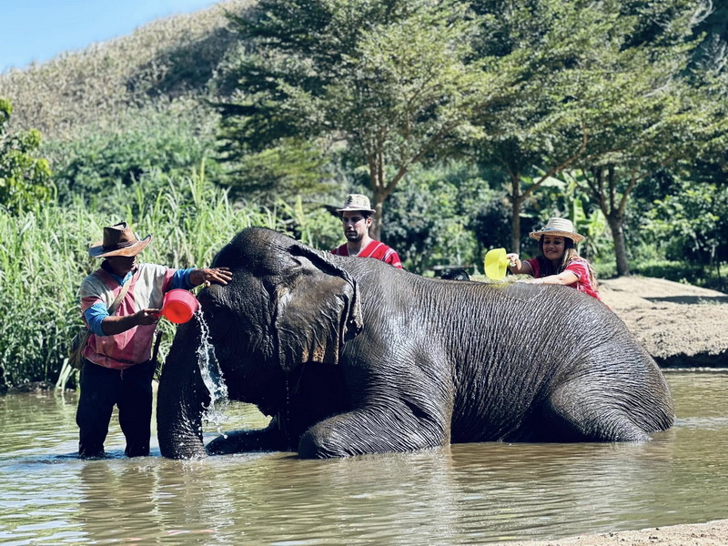 Later, head down to the river for the highlight of the tour: bathing the elephants. Splash and play with them in the water—an unforgettable moment for both kids and adults. After drying off, you’ll enjoy a simple but satisfying Thai lunch, then return to Chiang Rai by around 1:00 PM, with your heart full and camera full.