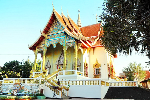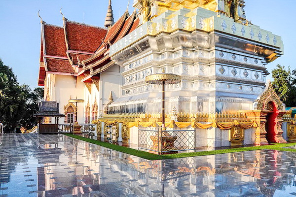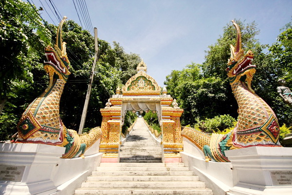 Wat Phrathat Doi Saket is located in the Doi Saket district, just outside the city of Chiang Mai. Travelling to the temple by motorbike or car will take approximately 30 minutes from the center of Chiang Mai. Doi Saket is located on the road north to Chiang Rai (Highway 118), just before the climb up the mountain on the right hand side. The Doi Saket district is predominantly a rural farming area, with plenty of rice fields in the valley as well as orchards and other farming on the mountainsides. I have attached a map to this article showing how to get there from Chiang Mai. Just drive straight for about 15 km until you see the sign to turn right for Doi Saket or you will see a large seated Buddha image, called Phra Buddha Pathimakorn can be seen from far. Keep following this road right through the middle of the little town and you’ll see an intimidating Naga staircase leading up to the temple. Other choices are more comfortable, you can contact travel agency to provide a car with driver to this temple or can combine program with Private tour Chiang Mai to Chiang Rai.